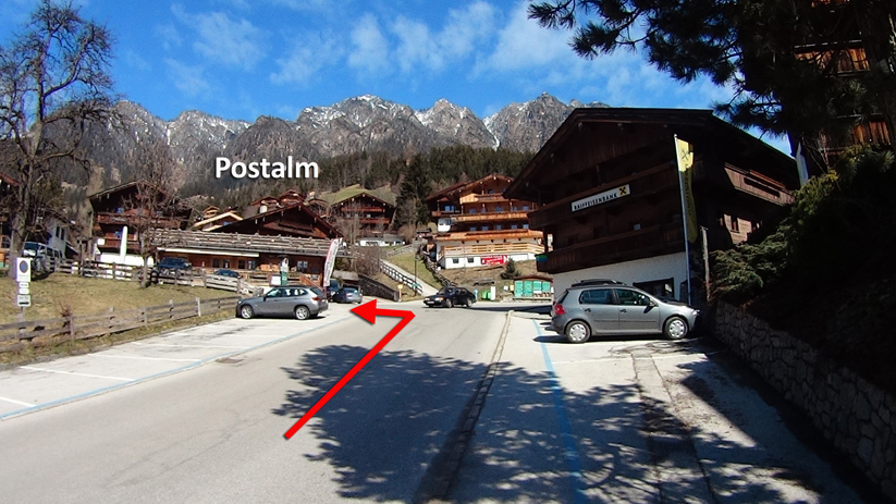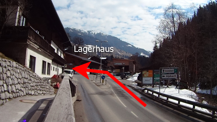 Weiterhin dem Straßenverlauf folgen. Du siehst rechts bei dem Schild "Ortsende Alpbach", wo Sie sehen 3 neue Häuser. Das mittlere Haus Fernwald. (Bild 5)