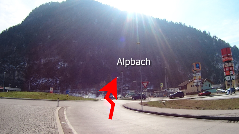 Dort verlassen Sie den Kreisverkehr ebenso bei der 2. Ausfahrt Richtung Reith / Alpbach. Nun folgen sie dem Straßenverlauf ca.8 km. (Bild 2)